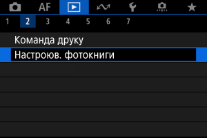 - Не використовуйте цю камеру для налаштування параметрів фотокниги для зображень із налаштуваннями фотокниги, зробленими на іншій камері. У такому випадку може бути випадково перезаписано всі налаштування фотокниги.