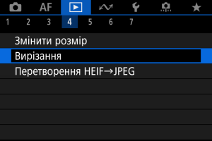 Зображення, зняті у форматі JPEG або HEIF, можна обрізати й зберегти окремо. Зображення у форматі RAW і зображення, отримані за допомогою функції захоплення кадрів із відеофайлів у форматі 4K, обрізати не можна.