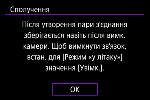 Навіть коли перемикач живлення встановлено в положення , поки камеру сполучено зі смартфоном через Bluetooth, можна використовувати смартфон для перегляду зображень на камері або виконання інших операцій.