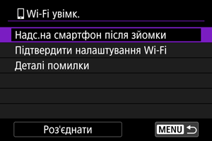- Якщо для параметра Wi-Fi уже встановлено значення [Увімк.], цей екран не відображається.