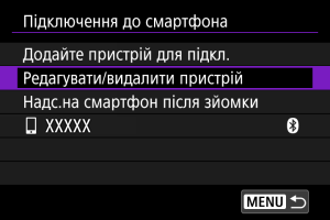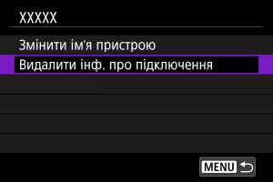 - Якщо на вашому смартфоні зберігаються дані про попередні сполучення з камерами, від не зможе встановити сполучення з цією камерою. Перш ніж виконати сполучення знову, видаліть дані про попередні сполучення з камерами на екрані параметрів Bluetooth вашого смартфона.