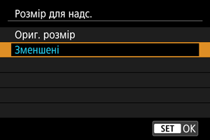 - Параметр [Розмір для надс.] дає можливість вибрати розмір зображення для надсилання.