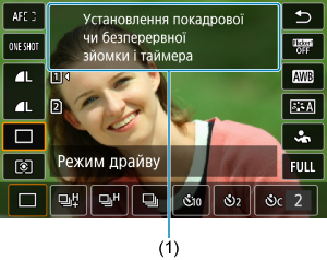 Під час використання швидкого керування може відображатися короткий опис функцій і елементів.