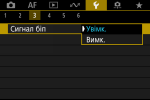 Вимикає звуковий сигнал для фокусування, зйомки з таймером, затвора й сенсорного керування.