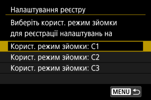 - Виберіть користувацький режим зйомки, який потрібно зареєструвати, потім натисніть [ОК] на екрані [Налаштування реєстру].