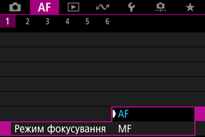 : Режим фокусування] значення [AF].
