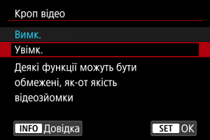 Коли використовуються об’єктиви RF або EF, відео можна обрізати навколо центра області зображення, як у разі використання телеоб’єктива.