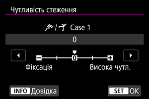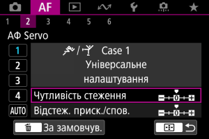 Налаштування чутливості стеження в режимі слідкуючого АФ у відповідь на рух сторонніх об’єктів повз точки АФ або вихід об’єктів зйомки із зони точок АФ.