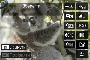 - Перемикатися між екранами [Після зміни] і [Параметри зйомки] можна за допомогою натискання кнопки