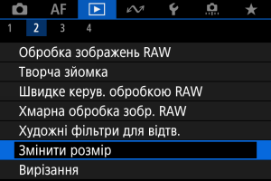 ), включно з тими, які знято з параметрами зйомки RAW+JPEG та RAW+HEIF. Зауважте, що змінення розміру недоступне для зображень