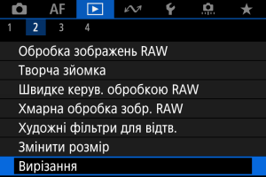 Зображення, зняті у форматі JPEG або HEIF, можна обрізати й зберегти окремо. Зображення у форматі RAW і зображення, отримані за допомогою функції захоплення кадрів із відеофайлів у форматі 4K, обрізати не можна.