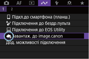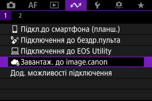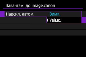 Зображення автоматично завантажуються в image.canon після запуску камери (або відновлення після автоматичного вимкнення). Зображення, завантажені до служби image.canon, можна завантажити на комп’ютер або передати до інших вебслужб.