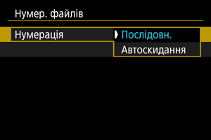 Зробленим знімкам, які зберігаються в папці, призначаються номери файлів від 0001 до 9999. Можна змінити спосіб нумерації файлів зображень.