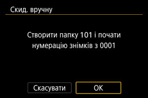 Коли виконується ручне скидання нумерації, автоматично створюється папка, у якій нумерація збережених зображень починається з 0001.