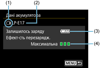 - Рекомендовано використовувати оригінальний акумулятор Canon LP-E17. Використання акумуляторів, які не є оригінальними виробами компанії Canon, може призвести до зниження ефективності роботи камери та виникнення несправностей.