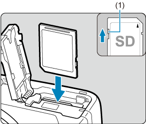 - Переконайтеся, що перемикач захисту від запису (1) на карті пам’яті встановлено у верхнє положення, щоб розблокувати запис і стирання.