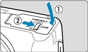 - Перед тим як відкривати кришку відсіку карти / акумулятора, переконайтеся, що індикатор доступу (1) не світиться.