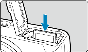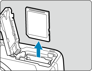 - Вставте карту пам’яті, тримаючи її етикеткою до передньої сторони камери, до фіксації з клацанням.