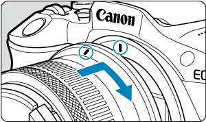 - Сумістіть червону позначку для кріплення на об’єктиві з червоною позначкою на камері. Поверніть об’єктив, як показано стрілкою, доки він не стане на місце з клацанням.
