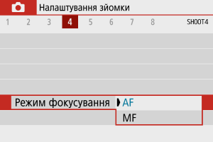 . Оскільки налаштування на об’єктиві має пріоритет, налаштування камери не діє.