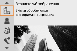 - У режимі [Зернисте ч/б зображення] попередній перегляд зернистого зображення дещо відрізнятиметься від готових знімків.