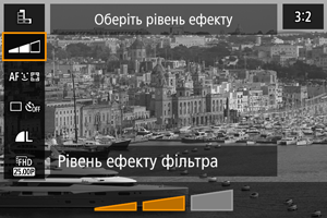 До зйомки можна застосувати ефекти фільтра. Ефекти фільтра можна переглянути перед зйомкою.