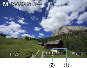 Якщо під час зйомки в режимі ручної експозиції для чутливості ISO встановлено значення [AUTO], можна задати значення корекції експозиції (), як показано нижче.