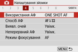 : Сигнал біп] установлено значення [Вимк.], фокусування не підтверджуватиметься звуковим сигналом.
