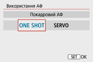 Цей режим роботи АФ використовується для зйомки нерухомих об’єктів. Після натискання кнопки затвора наполовину камера фокусується лише один раз.