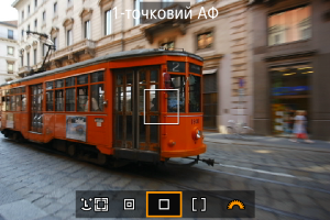 Можна вручну встановити точку АФ або рамку зони АФ. У цьому прикладі показано екрани з 1-точковим АФ.