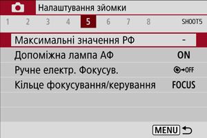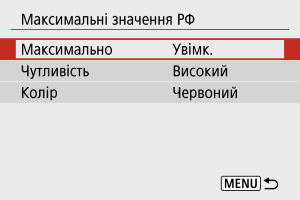 - Виділення для ручного фокусування може бути важко побачити за високої чутливості ISO, особливо коли встановлено розширення діапазону ISO. За необхідності зменште чутливість ISO або встановіть для параметра [Максимально] значення [Вимк.].