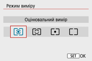 Передбачено чотири способи (режими виміру) визначення яскравості об’єкта. Зазвичай рекомендується оцінювальний вимір. Оцінювальний вимір вибирається автоматично в режимах основної зони (крім режиму :