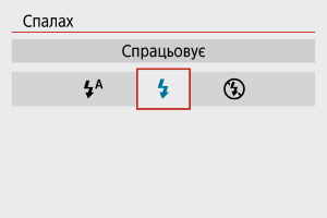 - Інші режими спалаху описано в інструкції з використання спалаху Speedlite, який підтримує відповідний режим спалаху.