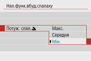 Установіть значення [Ручн. спалах], щоб зазначити бажану потужність спалаху в розділі [Потуж. спал.].