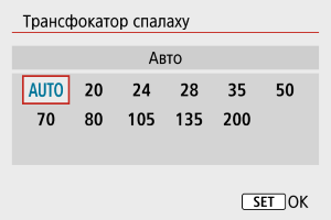 Якщо головку спалаху Speedlite обладнано трансфокатором, можна регулювати кут розсіювання спалаху.