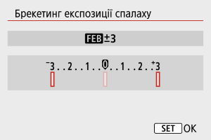 Для спалахів Speedlite з брекетингом експозиції спалаху (FEB) потужність спалаху може змінюватись автоматично за зйомки трьох послідовних кадрів.