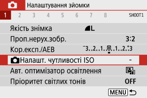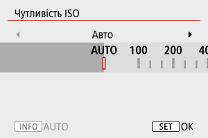 - Щоб установити значення [AUTO] під час налаштування параметра [Чутливість ISO] в розділі [