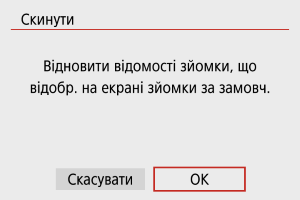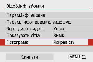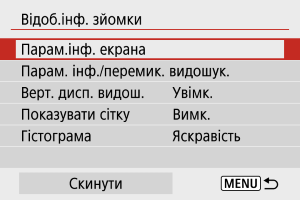 Відомості й інформаційні екрани, які відображаються на дисплеї або у видошукачі під час зйомки, можна налаштувати.