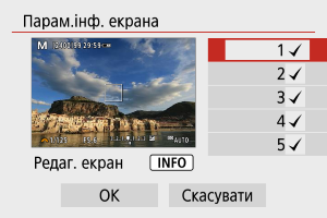 , щоб вибрати інформаційні екрани, які відображатимуться на дисплеї камери.