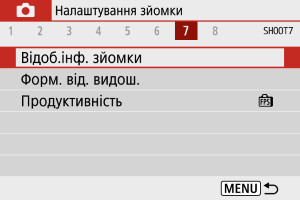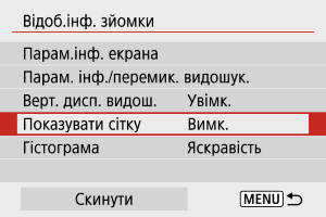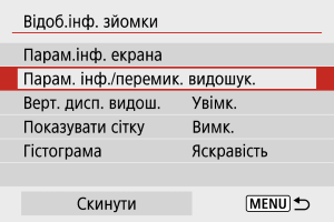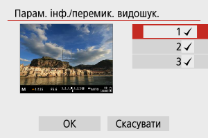 , щоб вибрати інформаційні екрани, які відображатимуться у видошукачі.