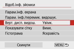 Можна вибрати спосіб відображення інформації у видошукачі під час зйомки фотографій у вертикальній орієнтації.
