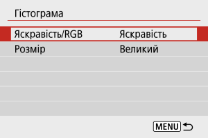 - Виберіть вміст ([Яскравість] або [RGB]) і розмір відображення ([Великий] або [Малий]).