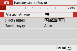 Докладніше про піктограми на екрані відеозйомки див. в розділі Екран відеозйомки.