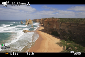 - Якщо змінити витримку, може записатися мерехтіння, що відображається на екрані під час відеозйомки за освітлення флуоресцентними або світлодіодними лампами.