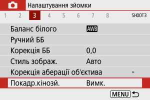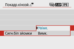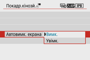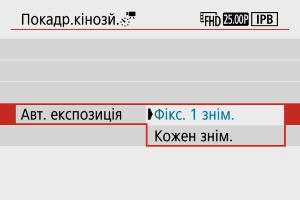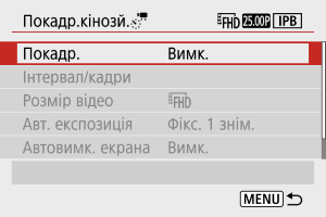 - Щоб скасувати покадрове записування відео, установіть для параметра [Покадр.] значення [Вимк.].