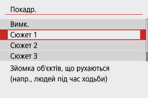 - Якщо вибрати [Сюжет *], доступні значення інтервалу й кількості знімків буде обмежено відповідно до типу сцени.