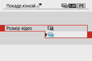 Зверніть увагу, що частота кадрів оновлюється автоматично для відповідності налаштуванням параметра [: Відеосистема] ().