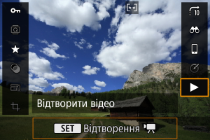 - У режимі відтворення зображень поодинці відео позначаються піктограмою [