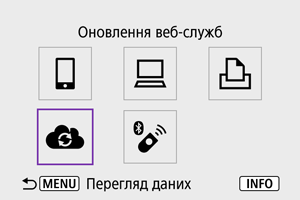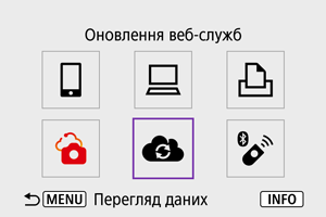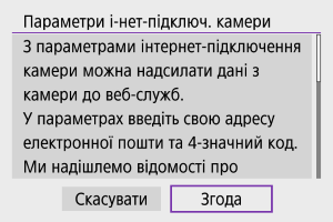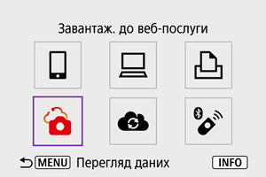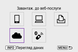 Зображення можна надсилати до служби image.canon. Оригінальні файли зображень, надіслані до служби image.canon, зберігаються там упродовж 30 днів без обмежень на простір для зберігання. Ці файли можна завантажити на комп’ютер або передати їх до інших вебслужб.