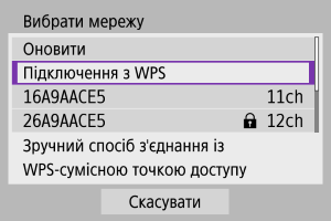 - Підключіться до точки доступу через Wi-Fi. Перейдіть до кроку 6 у розділі Підключення до мережі Wi-Fi через точки доступу.